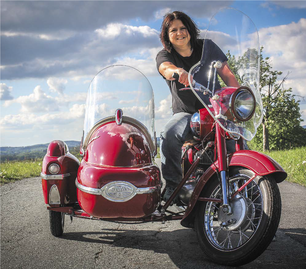 Pět motorek se sajdkárou, šest zrenovovaných, celkem dohromady asi patnáct motorek. Není toho zase tak moc. Je to hodně o prostoru. Máme je uložené v patře a museli jsme udělat výtah, abychom je mohli vyvést nahoru. Sbíráme pouze JAWU a máme jednu ČZ Druzetu. Když jsme se o motorky začali zajímat, tak se toho dalo opravdu ještě hodně sehnat. Spousta lidí je měla v garáži, na půdě. Koupili jsme první sajdku, ale já jsem brzy chtěla taky, nerada jezdím jako spolujezdec, ráda sedím za řídítky. Dali jsme tedy inzerát a postupně pořizovali další.